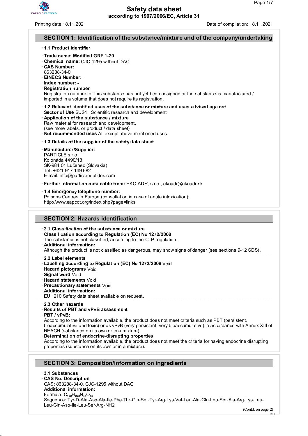 | Peptide | Mod GRF 1-29 (CJC-1295 No DAC) |