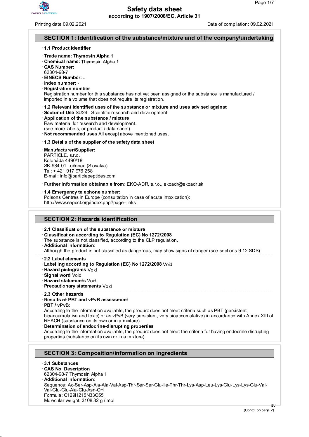 | Peptide | Thymosin Alpha 1 (Tα1 / Zadaxin) |
